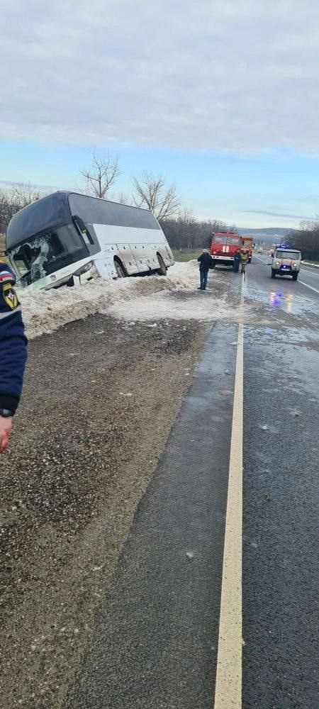 ДТП произошло в районе хутора Семигорского. В результате автобус вылетел с трассы в кювет, 22 пассажира и водитель оказались заблокированы. Прибывшие на место спасатели помогли пассажирам выбраться. В результате аварии пострадавших нет 💜 Мы в MAX 👍 ТК Краснодар | Подписаться