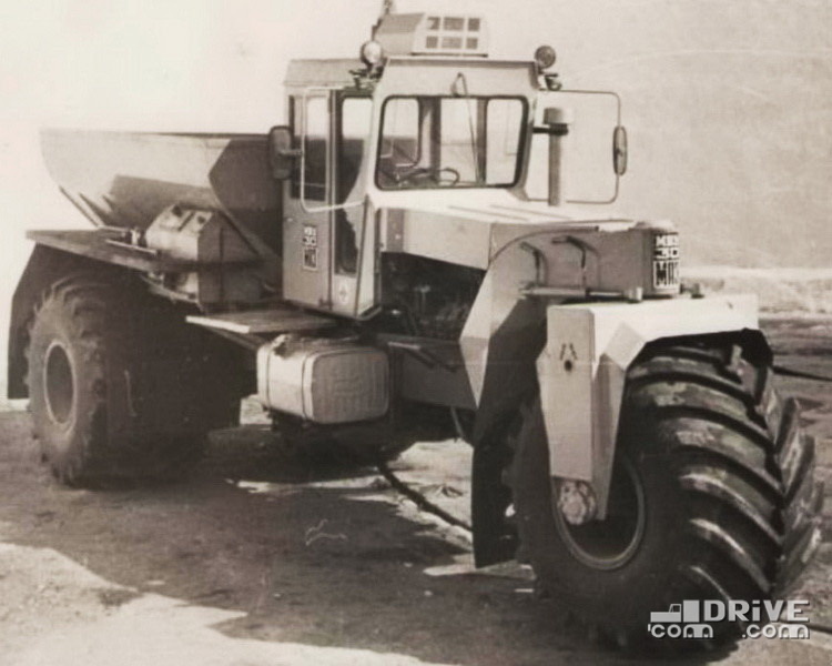В этот раз материалы проекта com-drive.com из ФБ хоть и с задержкой на день, зато с интересностями. Практически все показанное имеет какой-то скрытый или явный подвох. Машина для внесения удобрений МВУ-30 грузоподъёмностью 8 тонн. Производилась на Минском автозаводе в 1980-1983 гг, было изготовлено всего 58 экземпляров. Идея создать машину, которая была бы способна уверенно перемещаться по раскисшим весенним полям, появилась на МАЗе в 1976 году. В качестве ориентира для модели были выбраны самоходный разбрасыватель минеральных удобрений BIG A2500 (3х2) производства фирмы Rickel Manufacturing Co. из Канзаса и Terra-Gator 2505 (5х4) фирмы AG-Chem Equipment из Миннесоты. Уже в 1980 году должны были быть построены 200 единиц МВУ-30, но увы – не сложилось. Автопоезд в составе одноосного тягача МоАЗ-74053 и специального технологического прицепа для перевозки крупногабаритных грузов на территории Белорусского автозавода. Тема ВЗТ была и остается самой интересной среди любителей автотранспорта