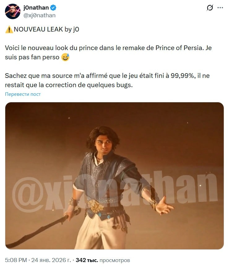 Ютубер и стример j0nathan утверждает, что отменённый ремейк Prince of Persia был готов на 99,99 %, оставалось только пофиксить баги
