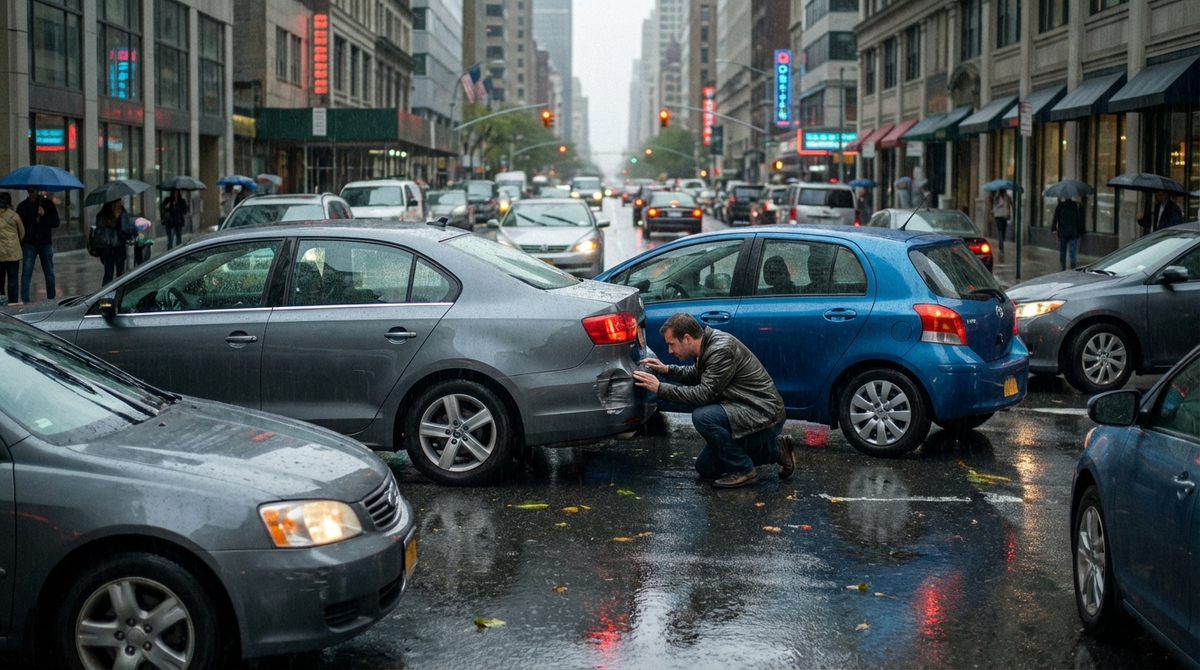 Удар был негромкий, но неприятный: глухой хлопок, и мою машину чуть толкнуло вперёд. Я вышел, посмотрел на бампер — царапина и небольшая вмятина. Ничего катастрофического, но и не “само пройдёт”.