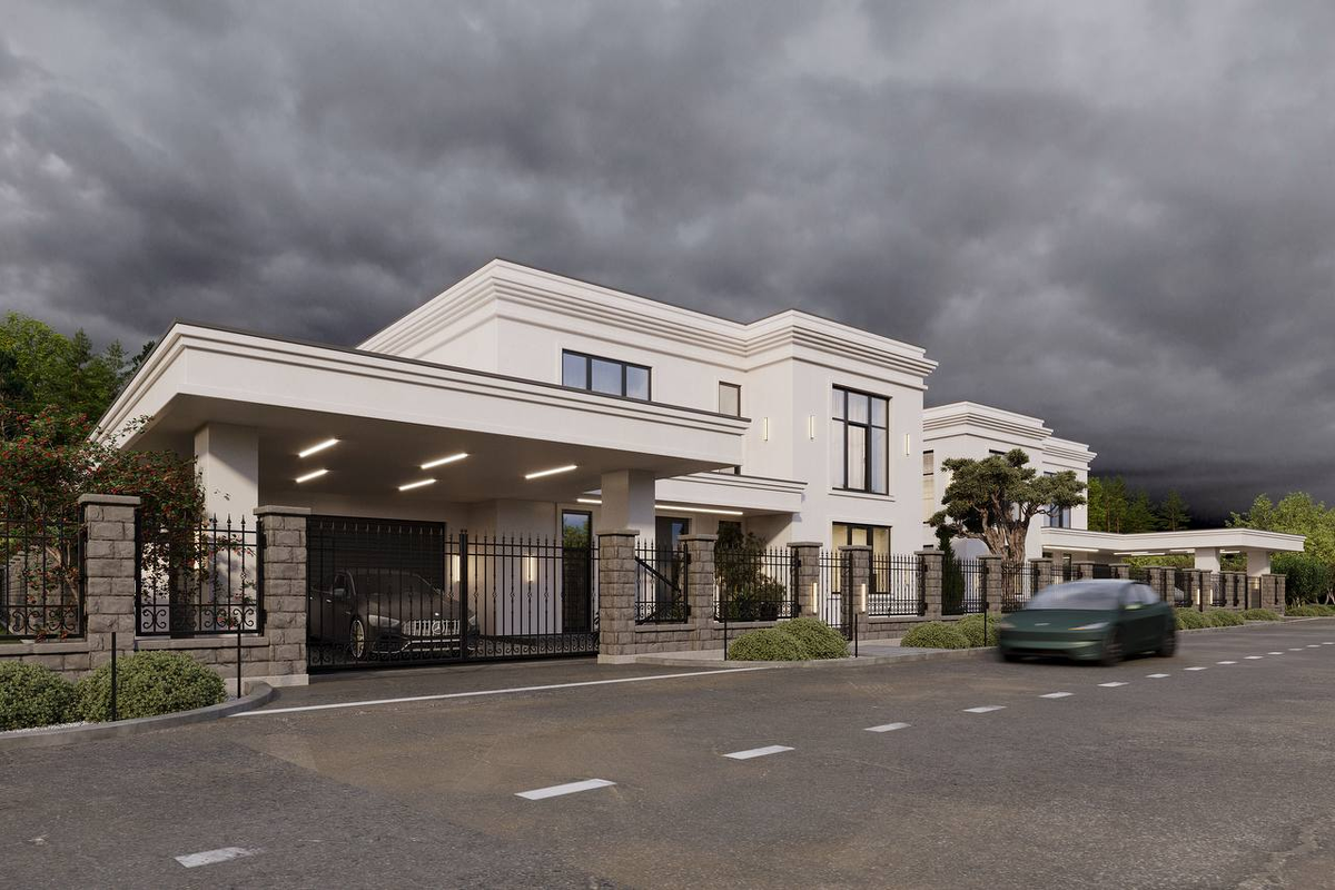 Симметрия здесь подчёркивает схожесть двух семей в образе жизни, вкусах и пожеланиях к комфорту. В каждом доме — 328 м² внутреннего пространства и терраса 24 м². На первом этаже — просторная кухня-гостиная 71 м²: окна, выходящие на три стороны, наполняют комнату светом в любое время дня, а продуманное зонирование делает её удобной и многофункциональной. Отдельным блоком организована спа-зона: парная, душевая и комната отдыха, изолированные от основной части дома. Второй этаж полностью посвящён приватному пространству — здесь размещены четыре спальни с отдельными ванными и гардеробными. При мастер-блоке — балкон площадью почти 25 м², дополнительное уединённое пространство на открытом воздухе. Фасады выполнены в керамограните — материал подчёркивает геометрию домов и создаёт сдержанный образ, который не потеряет актуальность с годами. Больше о нас и наших проектах: https://arhidom-buro.ru/
