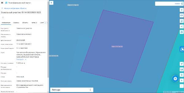 Название: Земельный участок с кадастровым номером 51:14:0030501:1822 площадь 1469 по адресу Российская Федерация, Мурманская область