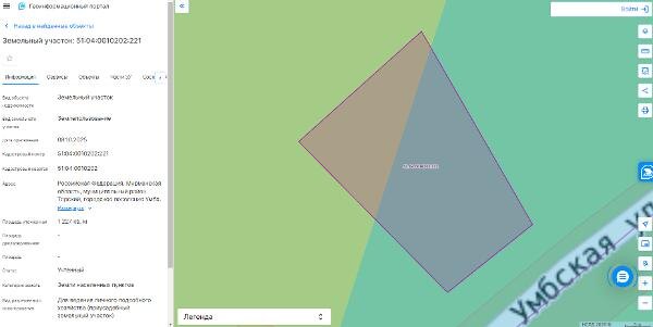 Название: Земельный участок с кадастровым номером 51:04:0010202:221 площадь 1227 по адресу Российская Федерация, Мурманская область
