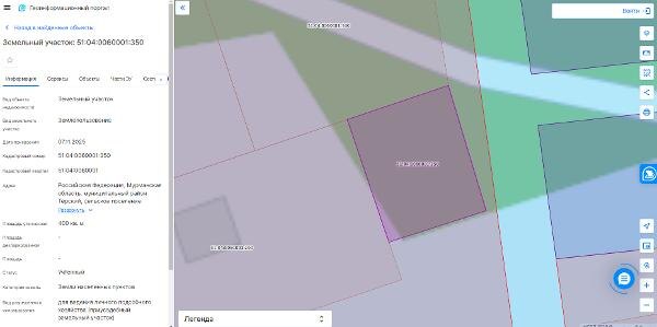 Название: Земельный участок с кадастровым номером 51:04:0060001:350 площадь 400 по адресу Российская Федерация, Мурманская область