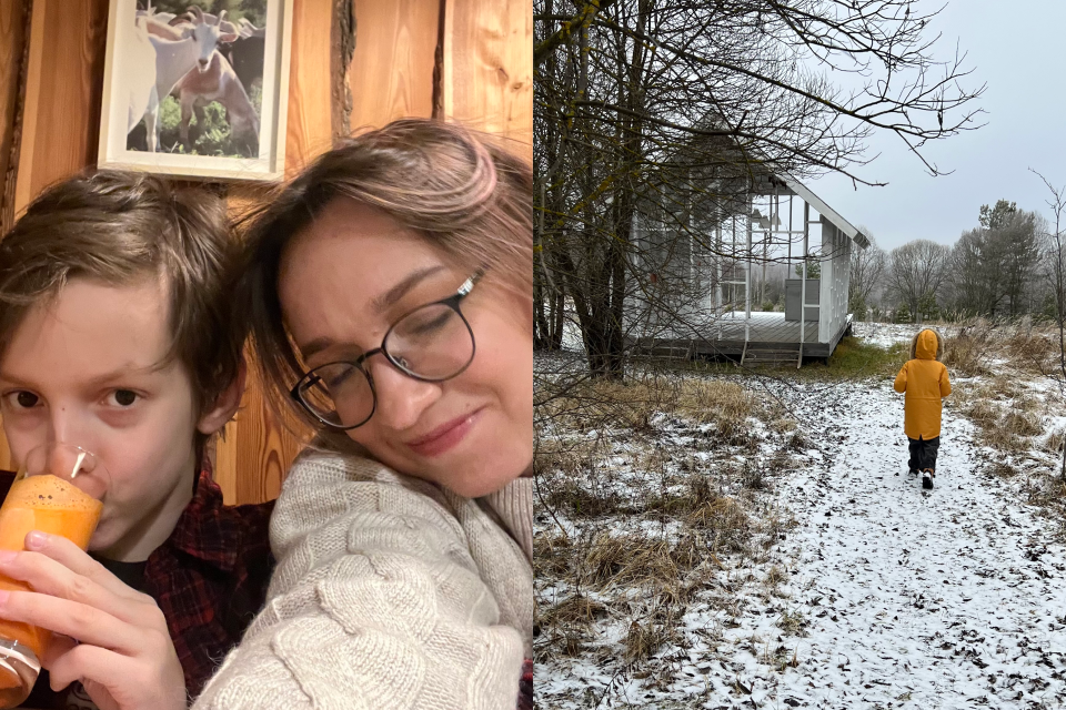 В Ясно Поле я провела три дня с сыном — без планов и заранее придуманных сценариев. Каждый день складывался из простых вещей: прогулок по большой территории, разговоров, настольных игр и пауз, которые в городе обычно не получается себе позволить. Такой формат отдыха оказался неожиданно насыщенным и при этом очень спокойным — ровно тем, что было нужно именно сейчас. Остановились в домике-шаре — это один из самых необычных форматов размещения в Ясно Поле. Домик компактный, но очень продуманный: удобные кровати, тепло, уютно и много света. Через панорамные окна открывается вид на поля и просторы — утром особенно приятно просто сидеть с чашкой чая и смотреть на природу. Такой формат отлично подходит для отдыха с ребёнком: необычно, но при этом комфортно и без ощущения «походных условий». Территория экопарка большая, и здесь действительно есть где гулять. Мы много ходили пешком — без спешки, без маршрутов, просто по настроению. Отдельное удовольствие — животные. Козы, коровы, лошади — ухоже