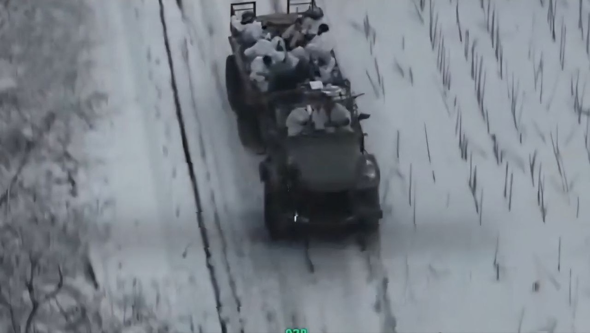Еще один образец российского штурмового автомобиля на базе «Урала» в объективе вражеского дрона