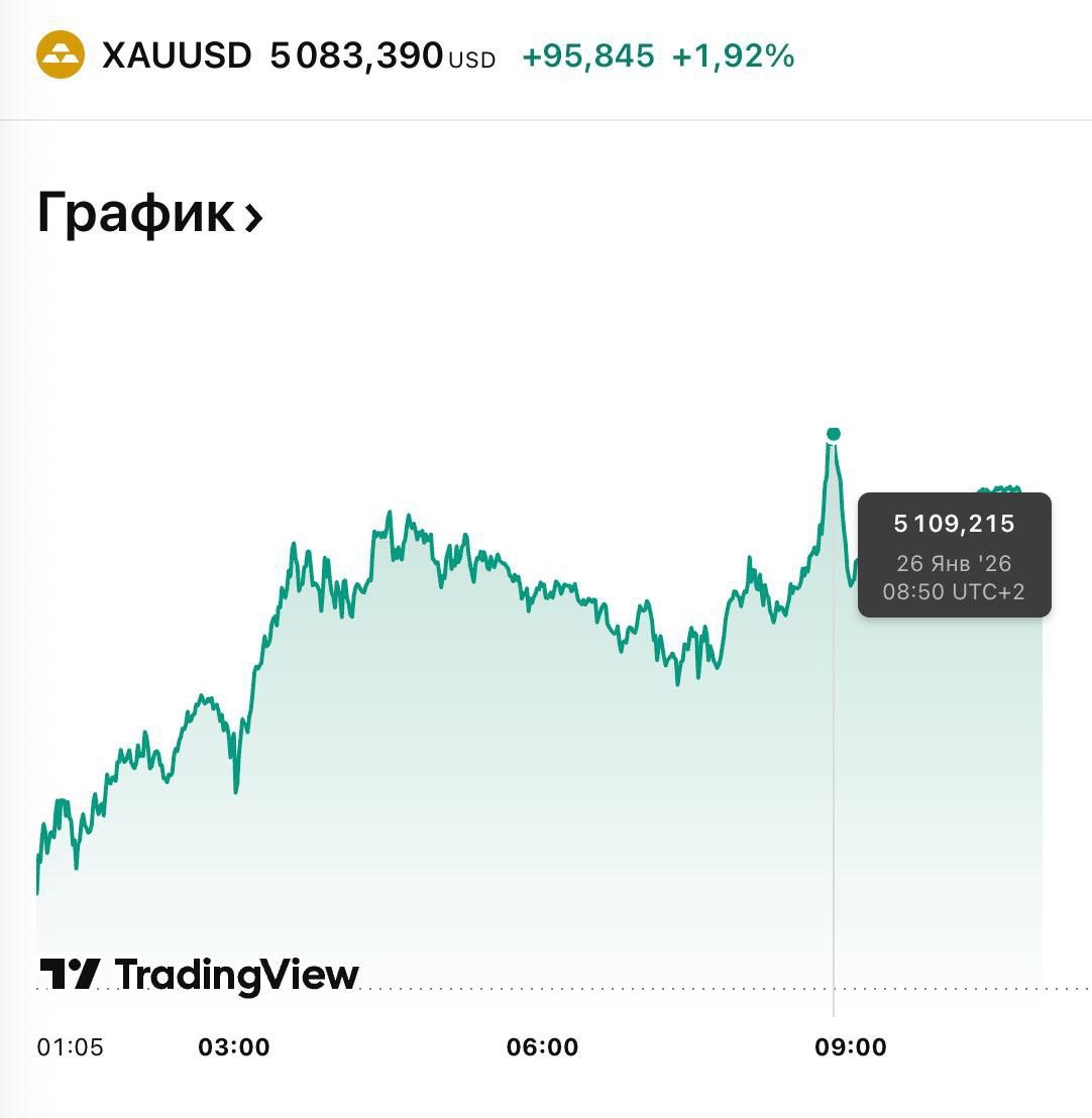 Цены на золото сегодня утром впервые превысили отметку в 5100 долларов за унцию