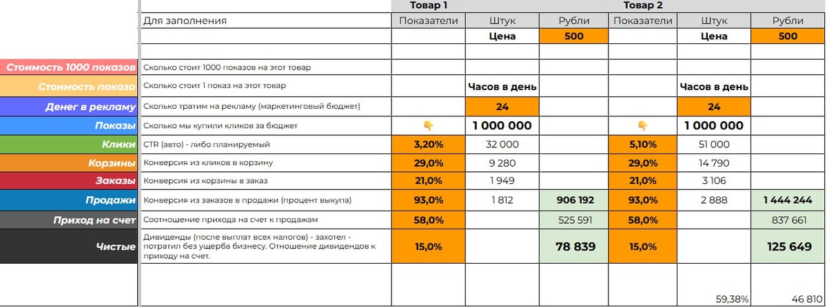 Как CTR влияет на конечную чистую прибыль реальный пример Конверсия в заказ и корзину, стоимость товара, выкуп и тд. все идентично Разница в CTR CTR было > 3,2% и CTR стало > 5,1% Относительный рост +59% Что поменялось Чистая прибыль так же выросла на 59% ну ракета же 🚀 Выводы, думаю, понятны: и это лишь CTR - самый верх воронки, а внутри ещё много чего интересного Дальше расскажу, какие именно изменения на карточке дали этот рост и как быстро и дешево тестировать ставь ❤️ если ждешь