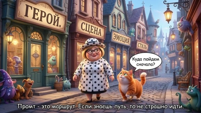 😊 И да, в комментариях самый частый вопрос — как писать промты. И я вас понимаю. Потому что промт сегодня — это не «техническая штука». Это необходимый навык общения. Только не с человеком… а с умным помощником. Давайте порассуждаем. Какие советы реально помогают, особенно новичкам, особенно когда немного за... ⤵️⤵️⤵️⤵️⤵️⤵️⤵️⤵️⤵️ 7 советов, которые работают почти всегда 1 ⏩ Начинайте с смысла, а не с красоты Сначала ответьте себе: зачем эта картинка / мем? Остановить скролл? Рассмешить? Поддержать? Подвести к теме? Если смысл понятен — промт пишется легче в 10 раз. 2 ⏩ Описывайте, как режиссёр Не «сделай красиво», а: кто герой → где он → что делает → что должно быть видно на экране. Нейросеть любит конкретику, но без перегруза. 3 ⏩ 1–2 якоря важнее десяти деталей Для моей серии мемов якоря такие: ► аватарка в горошек ► рыжий кот ► компьютер / кнопка / экран ► эмоция Этого достаточно, чтобы получилась узнаваемость. 4 ⏩ Эмоция — это половина результата Слова «удивлён», «дов