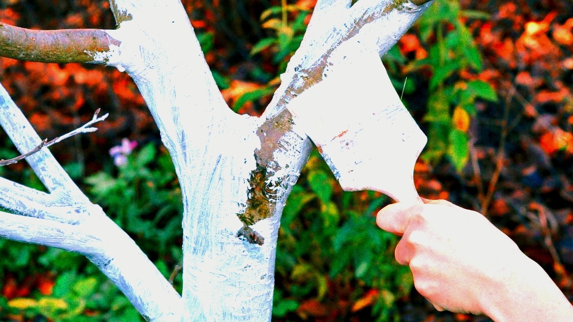 Основная функция побелки — защита от солнечных ожогов ранней весной, когда яркое солнце отражается от снега и буквально прожигает темную кору. Но осенью-то солнце не такое агрессивное! К тому же, любая побелка за зиму смывается дождями и сходит вместе со снегом.