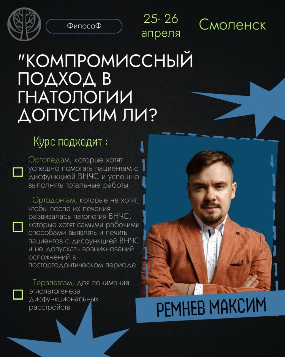 Приглашаем вас на практический курс Ремнева Максима по теме: «Компромиссный подход в гнатологии, допустим ли ?» Максим Ремнев