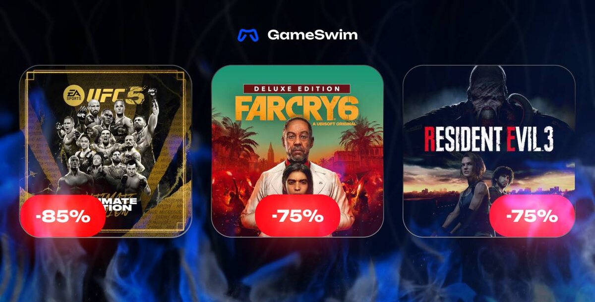 до 05.02.2026 ⚡️ Увлекательные приключения по отличным ценам! UFC 5 Ultimate Edition 13273₽ 1991₽ Симулятор смешанных единоборств с улучшенной графикой и механиками боя. Игроки управляют реальными бойцами UFC и участвуют в различных режимах, включая карьеру и онлайн-сражения. Far Cry 6 Deluxe Edition 4232₽ 1058₽ Шутер от первого лица, действие которого происходит на вымышленном острове Яра. Игроки борются против диктатора Антона Кастильо. Deluxe Edition включает дополнительные миссии и контент. Resident Evil 3 4888₽ 1222₽ Ремейк классической игры в жанре survival horror, где Джилл Валентайн пытается выжить в зомби-апокалипсисе. Игра предлагает напряженный геймплей и режим Resident Evil Resistance. Купить игру 👉 gameswim.ru