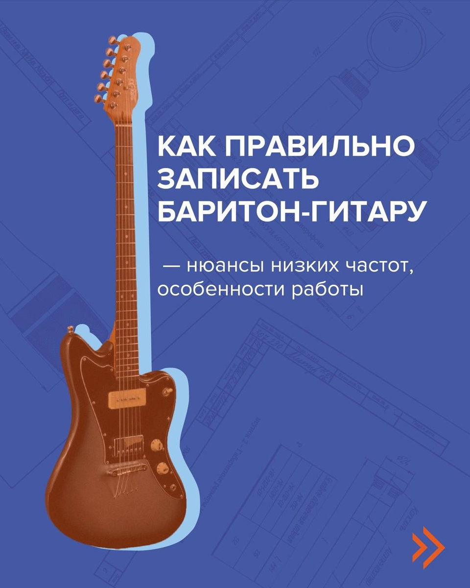 Баритон-гитара занимает пограничную зону между электрогитарой и басом, и именно это делает её сложной в записи. Основная задача — сохранить читаемость атаки и артикуляции, не потеряв при этом глубину и контроль низких частот. Ошибки в микрофоне или позиции быстро превращают баритон в мутный, перегруженный инструмент. Первое, на что стоит обратить внимание — частотный баланс. Баритон работает в диапазоне, где легко возникает конфликт с бас-гитарой и бочкой. Конечно, много зависит от аранжировки, но у звукорежиссёра уже на этапе записи стоит задача не переусердствовать с низом. Основной тембр формируется в нижней и средней середине, поэтому микрофон должен хорошо передавать именно эту область. И мы плавно подходим к