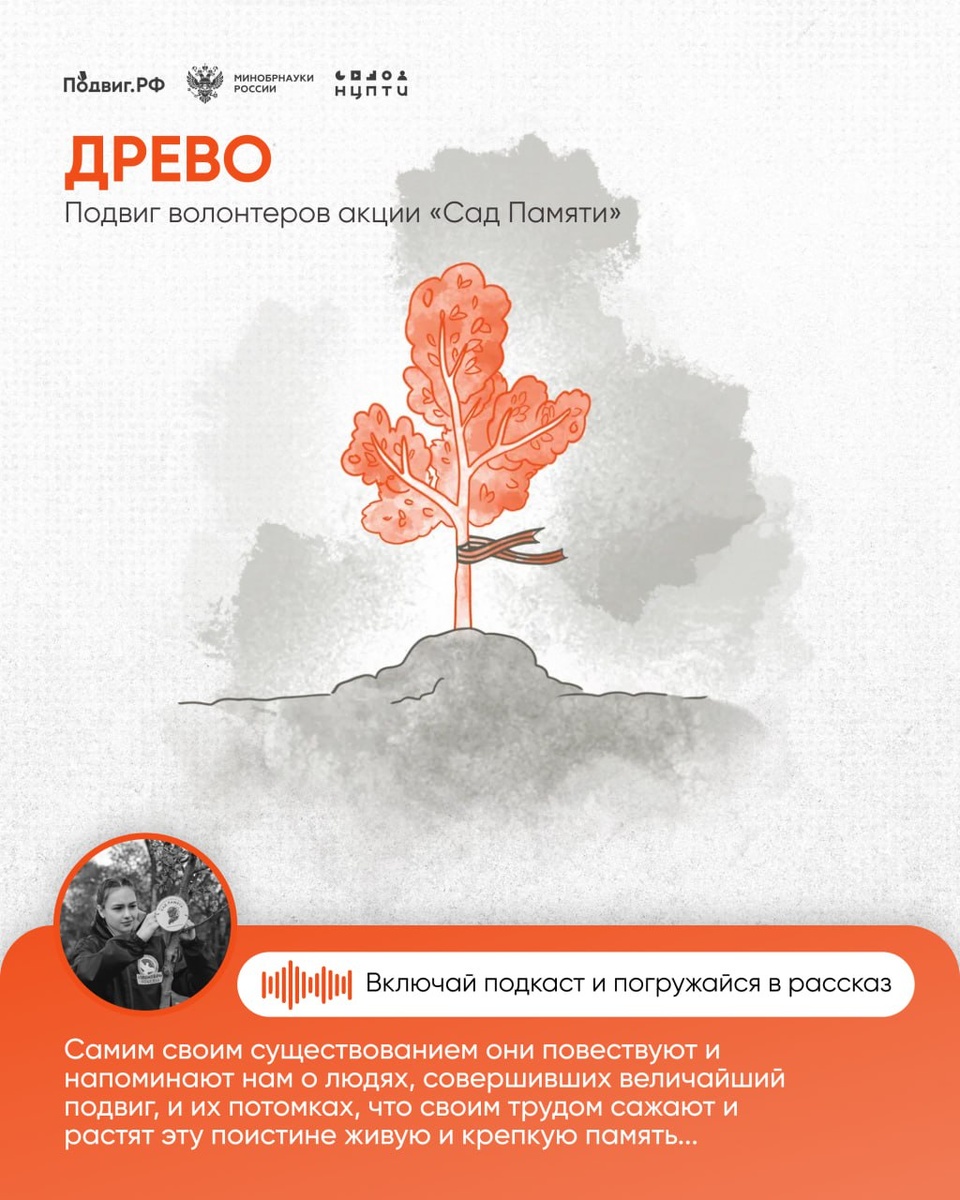 На протяжении пяти лет волонтеры акции «Сад памяти» ежегодно высаживают 27 миллионов деревьев в память о каждом погибшем в годы Великой Отечественной войны. За это время добровольцы из 78 стран мира совместными усилиями высадили свыше 130 миллионов памятных деревьев. Так унесенные войной жизни наших предков находят свое отражение в растущих деревьях, напоминая нам о неразрывной связи времен и о том, что память о героях живет, пока растет каждое из этих деревьев. Читать художественный рассказ о подвиге волонтеров акции 🧡Подвиг.РФ | Поддержать канал голосом #подвигрф #подвигрф_про_людей