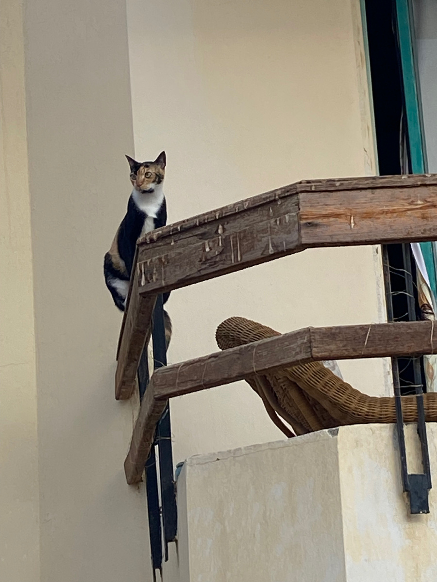 Египетская кошка на балконе: наблюдает за миром сверху, оценивает прохожих и думает, кто сегодня достоин её внимания.