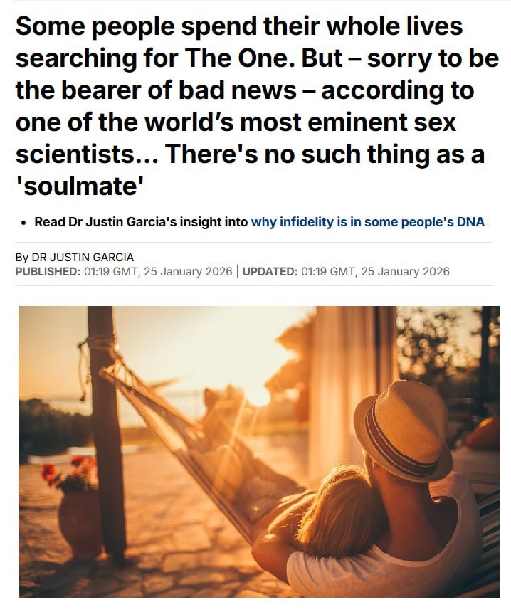 Рубрика: Общество Плохие новости для романтиков 🚨: специалисты заявили, что «вторая половинка» — это миф. Никаких родственных душ не существует. Вместо этого успешные отношения строятся на умении решать конфликты, поддерживать друг друга и расти вместе. Исследования показывают, что миф о «второй половинке» мешает людям строить реальные отношения. Вместо того чтобы работать над тем, что есть, многие ждут идеального партнёра, который якобы где-то существует. Но любовь — это не магия, а навык, который можно развивать. 💡 Сексологи приводят пример из шоу Strictly Come Dancing, где во время танцев распадались крепкие пары и возникали новые романы. Почему? ... #отношения #психология #мифы #любовь #Strictly_Come_Dancing Читать на сайте ➡️ Подписаться