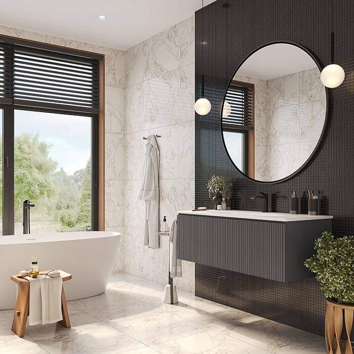 , оснащенная механизмом push-to-open, и выделяющаяся своим оригинальным дизайном. На фото – комплект мебели матового серого цвета RAL7016, который прямо сейчас есть В НАЛИЧИИ на нашем складе! Актуальная розничная стоимость комплекта «тумба+раковина» на 26.01.2026 – 151 940 ₽. Мы знаем, как сделать Вашу ванную комнату особенной! Подробнее на www.dushlux.ru