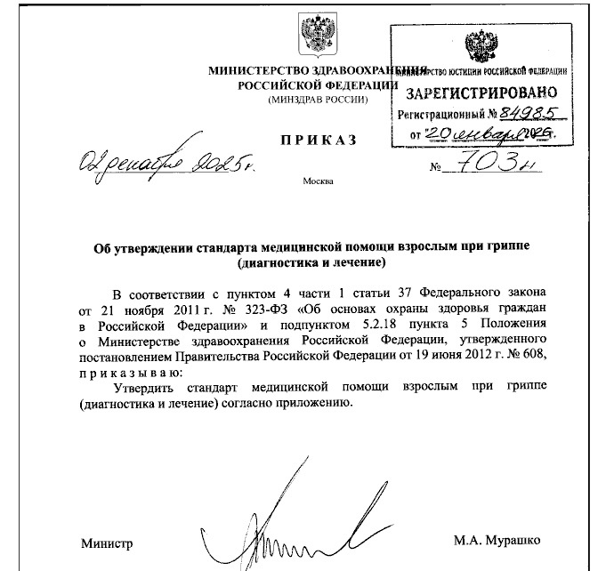 В России вступил в силу новый стандарт оказания медицинской помощи взрослым при гриппе. Документ подписан министром здравоохранения Михаилом Мурашко и опубликован на портале правовых актов. Новый порядок, как и предыдущая редакция стандарта для лечения гриппа средней степени тяжести, регулирует форму и объем медицинской помощи, условия ее предоставления и используемые методы. Среди ключевых изменений — сокращенные сроки лечения. Если раньше на борьбу с заболеванием отводилось до 15 дней, теперь — только 9. Значительно расширен и перечень лабораторных анализов, которые могут быть назначены пациентам. Если ранее в списке было 16 пунктов, то теперь — 27. В него добавлены, в частности, мазки на различные типы человеческих коронавирусов, а также коагулограмма (исследование показателей свёртываемости крови). Обновились и инструментальные методы диагностики. Помимо флюорографии, рентгена носовых пазух и ЭКГ, теперь применяются пульсоксиметрия для измерения уровня кислорода в крови, рентгеногр