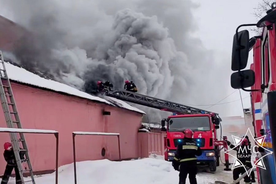 В Гомеле подразделения МЧС ликвидируют пожар на предприятии