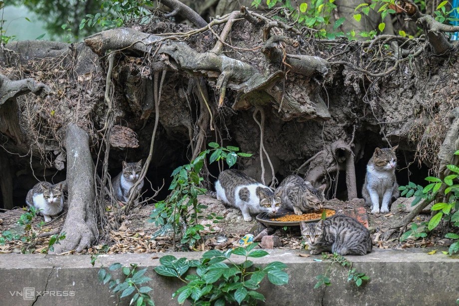 На острове озера в парке Thong Nhat (г.Ханой) в настоящее время живут около 30 кошек.