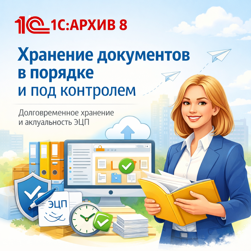 Но вместе с этим возникает вопрос, о котором задумываются не сразу: как хранить эти документы правильно и безопасно в течение многих лет? Именно для этой задачи и создана программа «1С:Архив 8». 1С:Архив 8 — это типовое решение фирмы «1С» для долговременного хранения электронных документов. В систему выгружаются документы из учетных баз 1С и других источников, после чего они хранятся централизованно, с соблюдением требований законодательства. Программа позволяет: Проще говоря, 1С:Архив 8 — это надёжная «память» организации, рассчитанная на годы. Решение востребовано в компаниях, где: В первую очередь это: Без лишней теории — только то, что действительно используется на практике. ✔ Централизованное архивное хранение