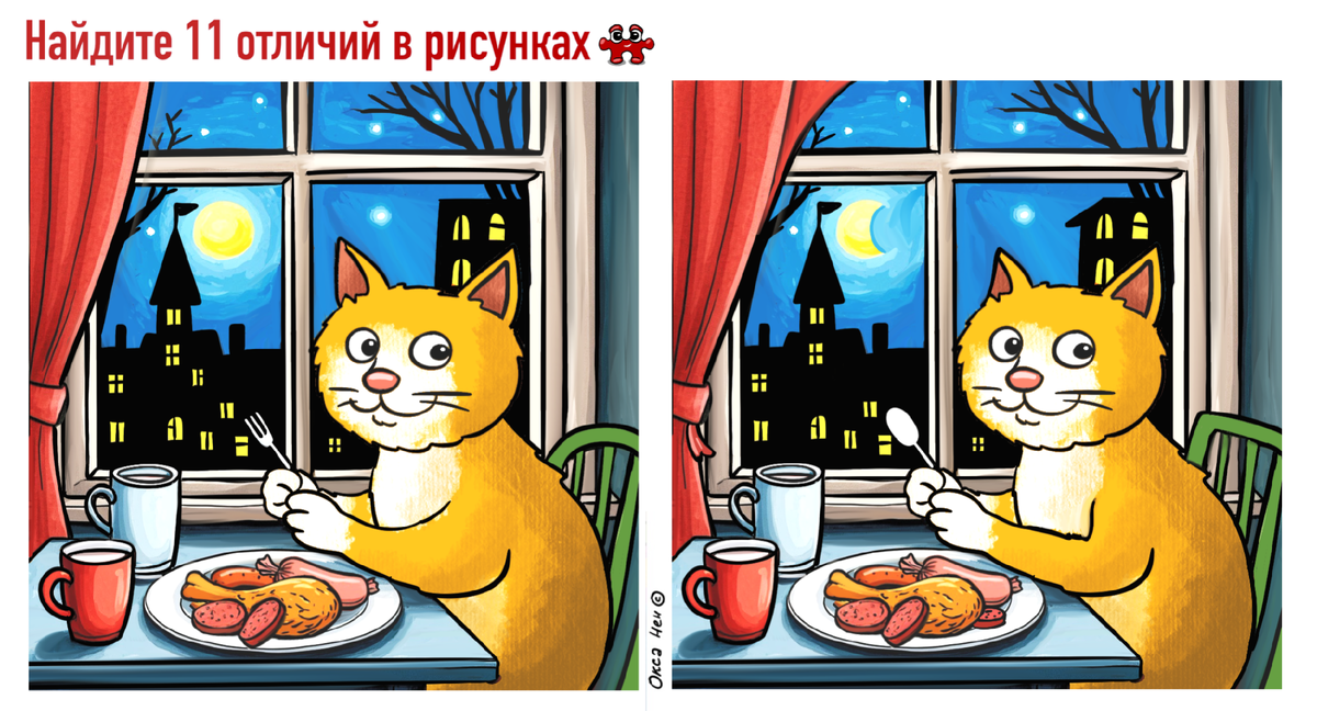 Поздний ужин с котиком. Переключиться и отдохнуть помогут 11 отличий с рыжим котиком про