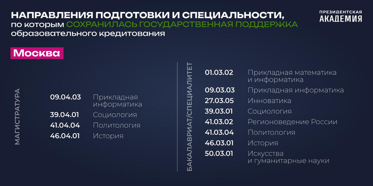 Господдержка образовательного кредитования будет оказываться не по всем направлениям подготовки и специальностям. Подробнее о льготных кредитах рассказывали здесь.