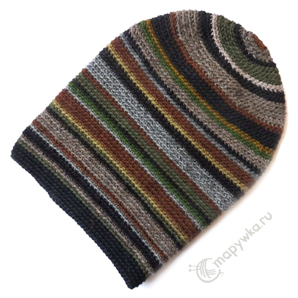 Длинная шапка бини в полоску