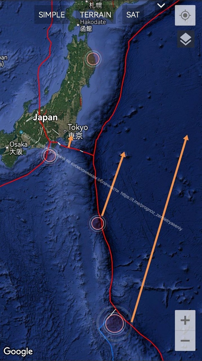 Судя по картине и смещению ОСТИ, имеет место встреча векторов со стороны Тихого океана 🌊 === In the northeast of Honshu, strong tectonic stress persists in the junction zone of the Philippine and Okhotsk plates. Judging by the picture and the displacement of the CSTIs, there is a meeting of vectors from the Pacific Ocean.