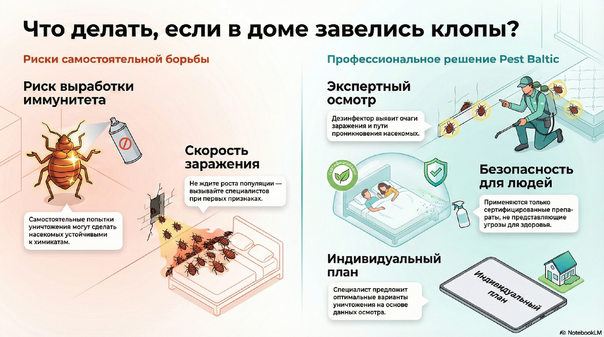 Компания Pest Baltic предлагает профессиональный подход к решению проблемы: Каждый случай индивидуален, поэтому важно не просто «побрызгать», а устранить причину появления насекомых. Все препараты,
