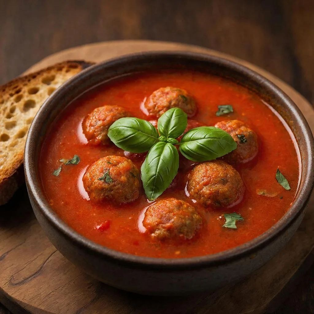 ! Привет, те, кто верит: ужин – это не просто еда, а ритуал удовольствия! 🤝 Если вы из тех, кто считает, что «поел» – это когда тёплый живот, довольное сердце и чистая тарелка… Тогда этот суп – ваш идеальный союзник в холодный вечер. Густой, насыщенный, с сочными фрикадельками и ароматом базилика. Ингредиенты: - Фарш (свинина+говядина или индейка) – 300 г - Лук – 1 шт. - Чеснок – 2 зубчика - Томатная паста – 2 ст. л. - Консервированные томаты в собственном соку – 400 г - Бульон (овощной или мясной) – 500 мл - Свежий базилик – горсть - Соль, перец, орегано – по вкусу - Сыр пармезан – для подачи (опционально) Приготовление: 1. Сделайте фрикадельки: фарш + мелко рубленый лук + соль + перец. Скатайте в шарики. 2. Обжарьте их на сковороде до корочки (не до готовности – они дойдут в супе). 3. В кастрюле обжарьте чеснок, добавьте томатную пасту, потом – консервированные томаты и бульон. 4. Доведите до кипения, опустите фрикадельки, варите 15–20 ми