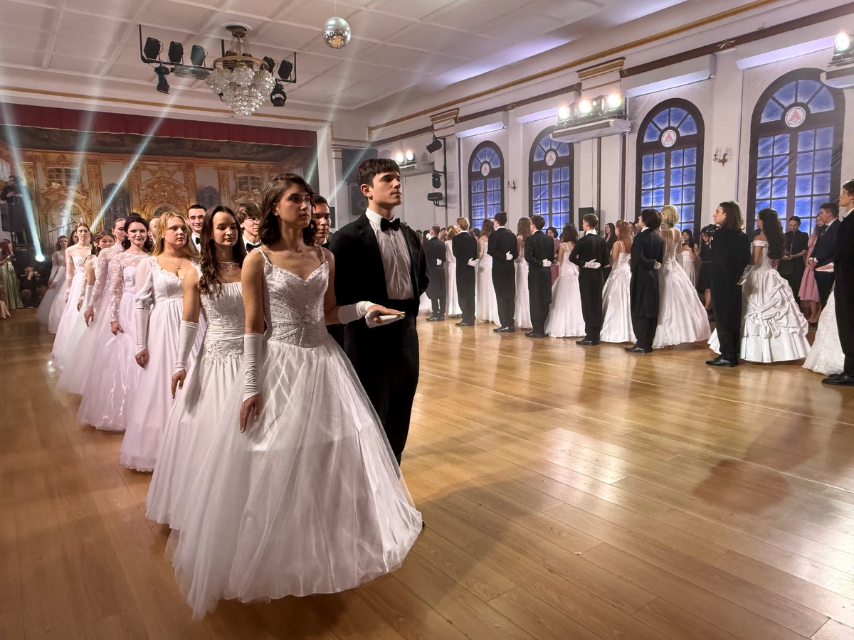 Студенческий бал ЮФУ 2026 в Таганроге: встреча джентльменов во фраках и дам в пышных светлых платьях