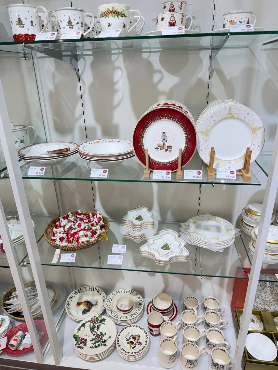 вот так выглядит магазин внутри 😊 очень много сервиза, из-за рубежа и чисто корейского) есть даже тарелки с щелкунчиком и петухом