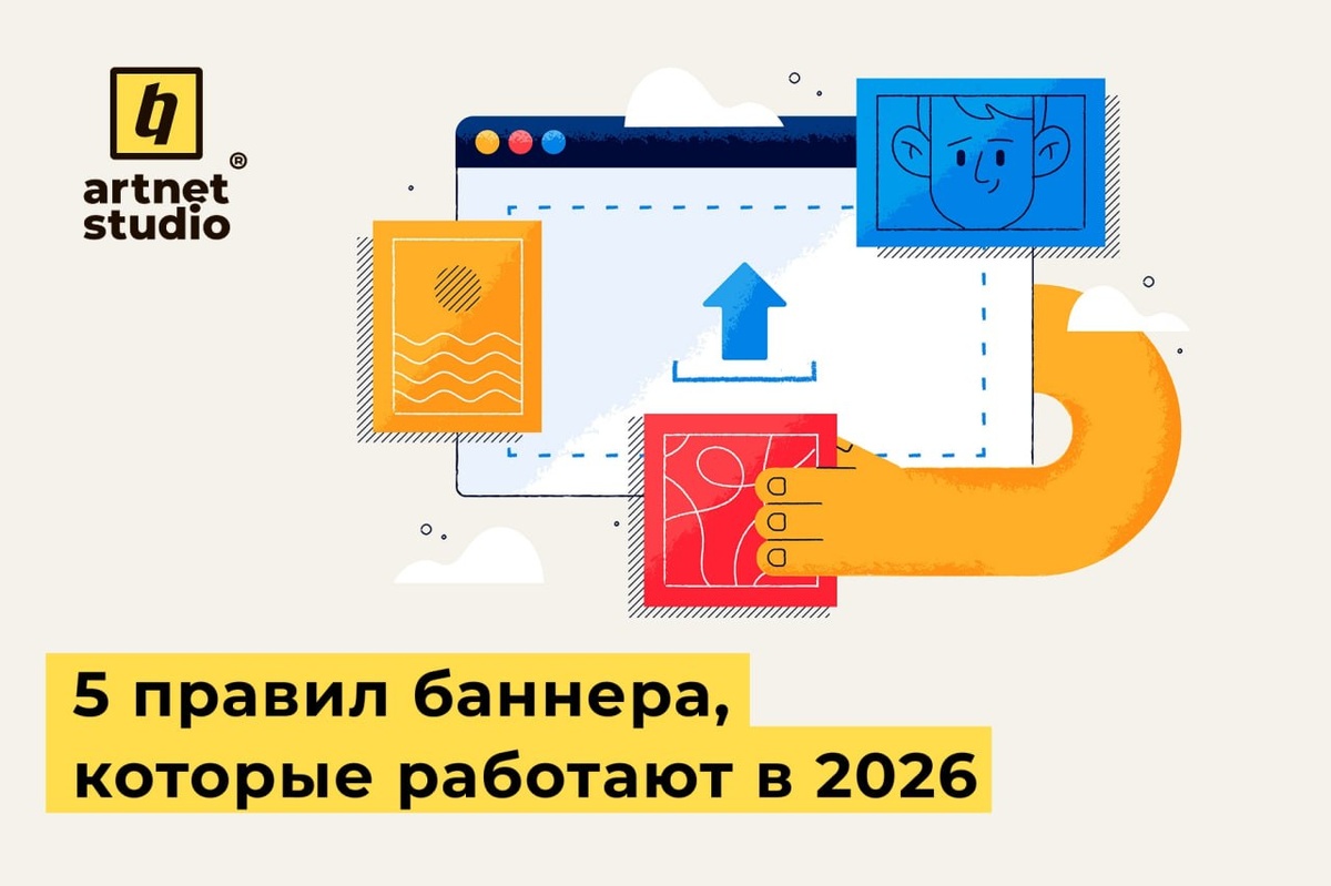 Первый экран баннера - это 3 секунды, за которые пользователь решает кликнуть или пролистать. Типичная ошибка - перегруженность: много текста, мелкие детали, несоответствие обещания рекламы. 5 правил баннера, которые работают в 2026: Заголовок крупно и конкретно (5–7 слов): не «услуги компании», а «сайт за 30 дней от 50к». Контраст CTA: кнопка должна выделяться цветом и размером — тестируйте жёлтый/оранжевый на тёмном фоне. Одна картинка = одно послание: портрет улыбающегося клиента или экран с результатом, без абстракций. Правило 60/30/10: 60% фона, 30% заголовок+картинка, 10% кнопка — пустое пространство продаёт. Мобильная читаемость: текст 24px+, кнопка не меньше 44x44px — 70% трафика с телефонов. Хотите проверить ваш баннер по этим правилам? 📞 Запишитесь на бесплатную консультацию: +7 (8332) 222-00 ✉️ mail@artnetstudio.ru 🌍 artnetstudio.ru 📍 г. Киров, ул. Защитников Отечества, д.120, офисы 202–301