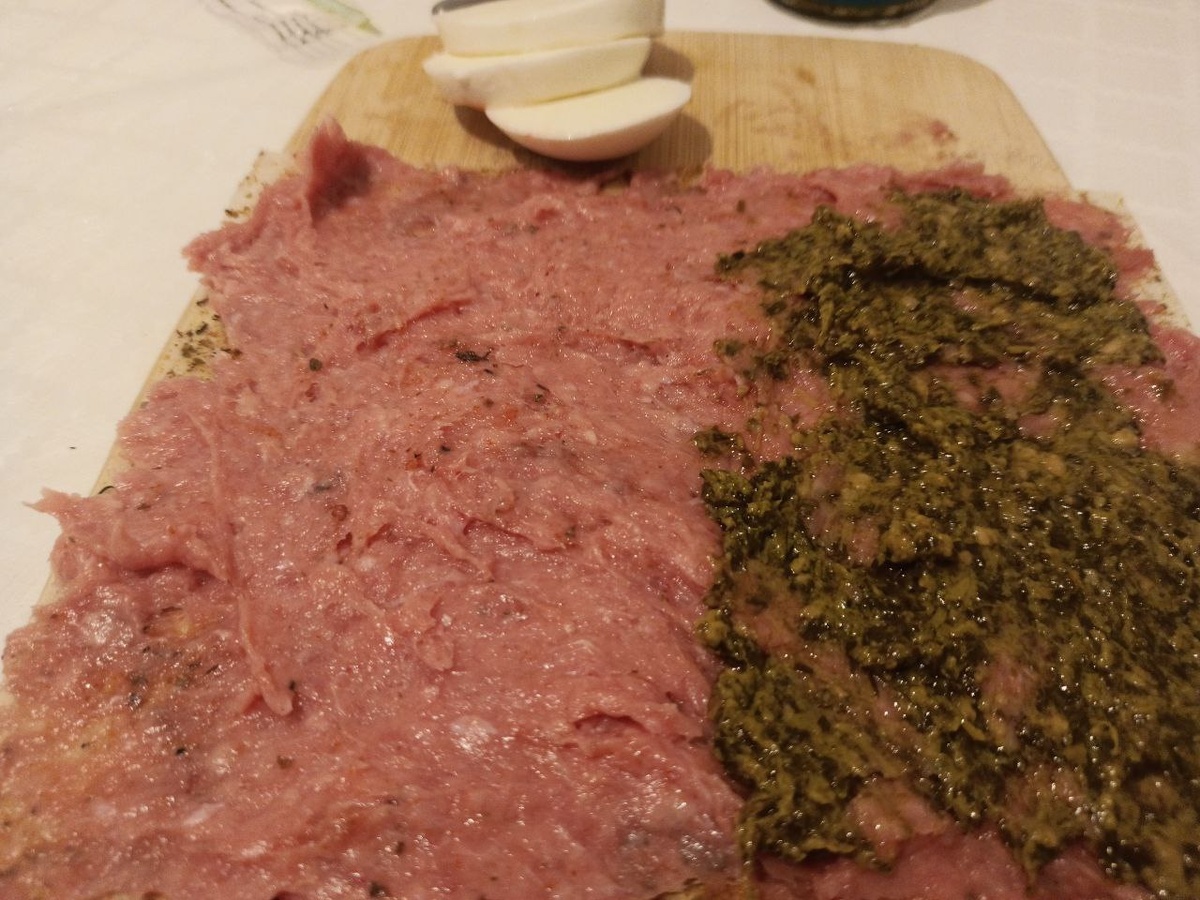 Только ленивый не приготовил эти модные котлеты на листах для жарки. Мы тоже решили их попробовать. Сделали на сковороде, а потом еще и в аэрогриле, и сравнили - где же вкуснее. Времени на готовку уходит совсем немного, а итог радует: получается большая сочная котлета с необычным вкусом, которую можно и на праздничный стол гостям подать. Конечно, нужны те самые листы для жарки. Мы использовали покупные. Из перечисленного набора продуктов получилось три большие котлеты нестандартной формы. 1. Раскладываем лист для жарки, одну треть фарша ложкой размазываем по листу. Важно сделать это равномерно, не оставлять комков и "проплешин". 2. Одну треть соуса песто размазываем по половинке фарша. 3. Берем три дольки томата и два кусочка моцареллы и, чередуя, выкладываем на песто. Можно взять больше сыра и меньше помидор, тут уж дело вкуса. 4. Закрываем нашу начинку второй половинкой листа с фаршем, немного приглаживаем, но осторожно, чтобы не расплющить. Выкладываем лист с котлетой на разогретую