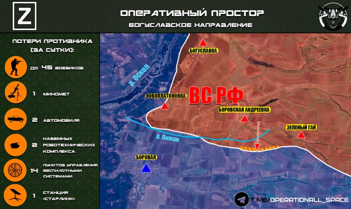 п. Боровская Андреевка. 🔻Подразделения #1_танковой_армии ГВ «Запад» ведут бои за опорные пункты при активной поддержке ударных БпЛА. Оперативный простор Карта носит ориентировочный характер и может быть скорректирована по мере поступления новых данных.