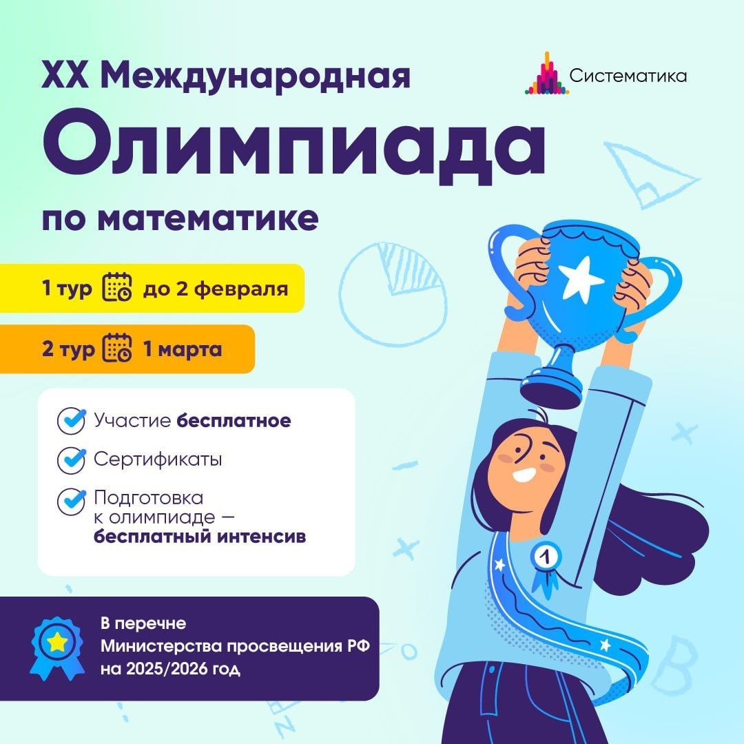 ❗️Продлили 1 тур 20 олимпиады Систематики по математике до 2 февраля, чтобы все желающие успели принять участие