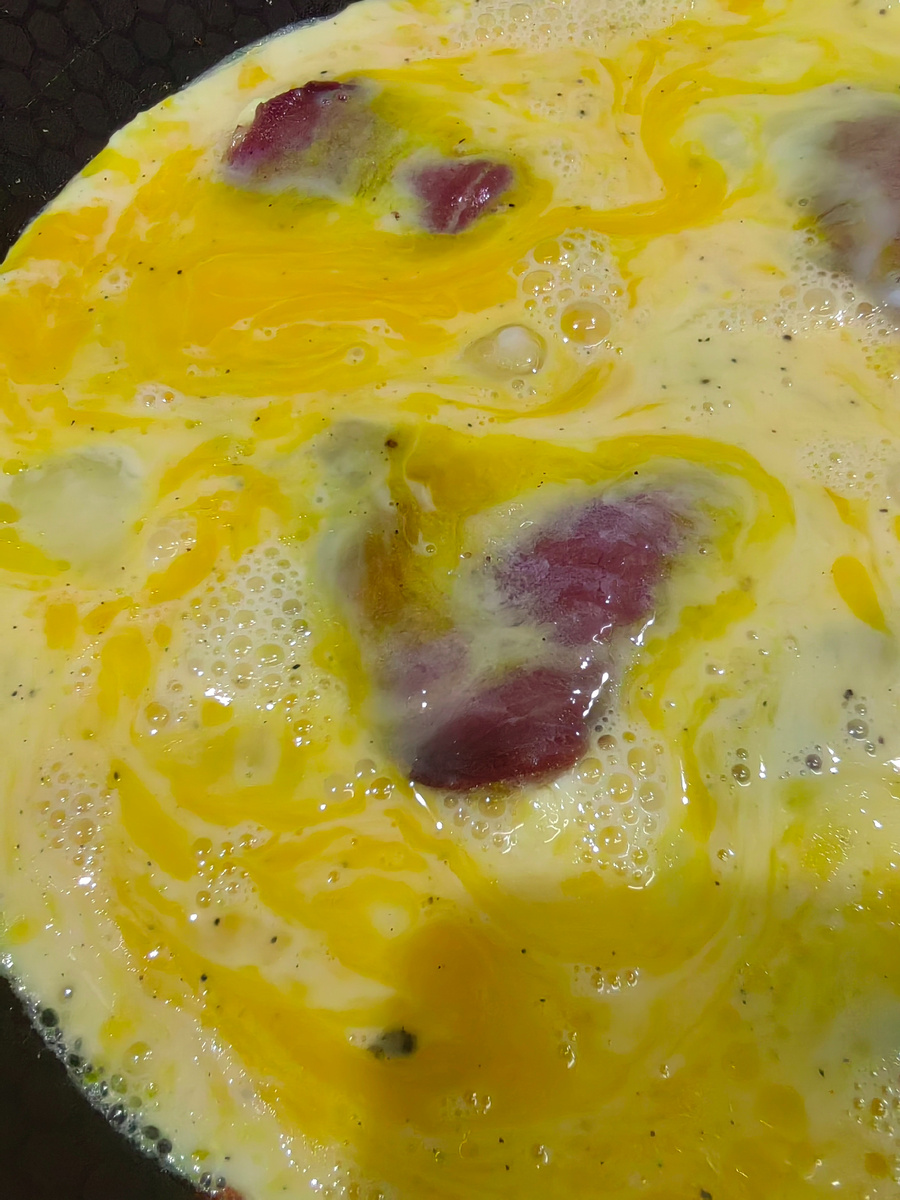 Конечно на фото омлет в процессе приготовления.