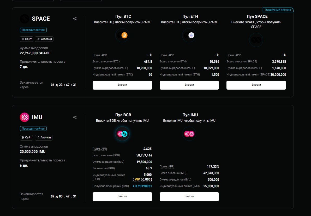 💻 Что делать? ➡️ Регистрируемся на бирже Bitget (Скидка комиссии 20%) 🟠SPACE Пул BTC - 10,900,000 SPACE Пул ETH - 10,899,000 SPACE 🟠IMU Пул BGB - 19,500,000 IMU 🟠 еще есть PoolX IMU Пул ETH ~2.64% 👉 Купить кус можно в NVS SHOP 👉 Прокси беру на proxyline промо AllWin 👉 Антидетект браузер ADS промо на 5% ALLWIN5 ❕ Гайд по созданию фермы
