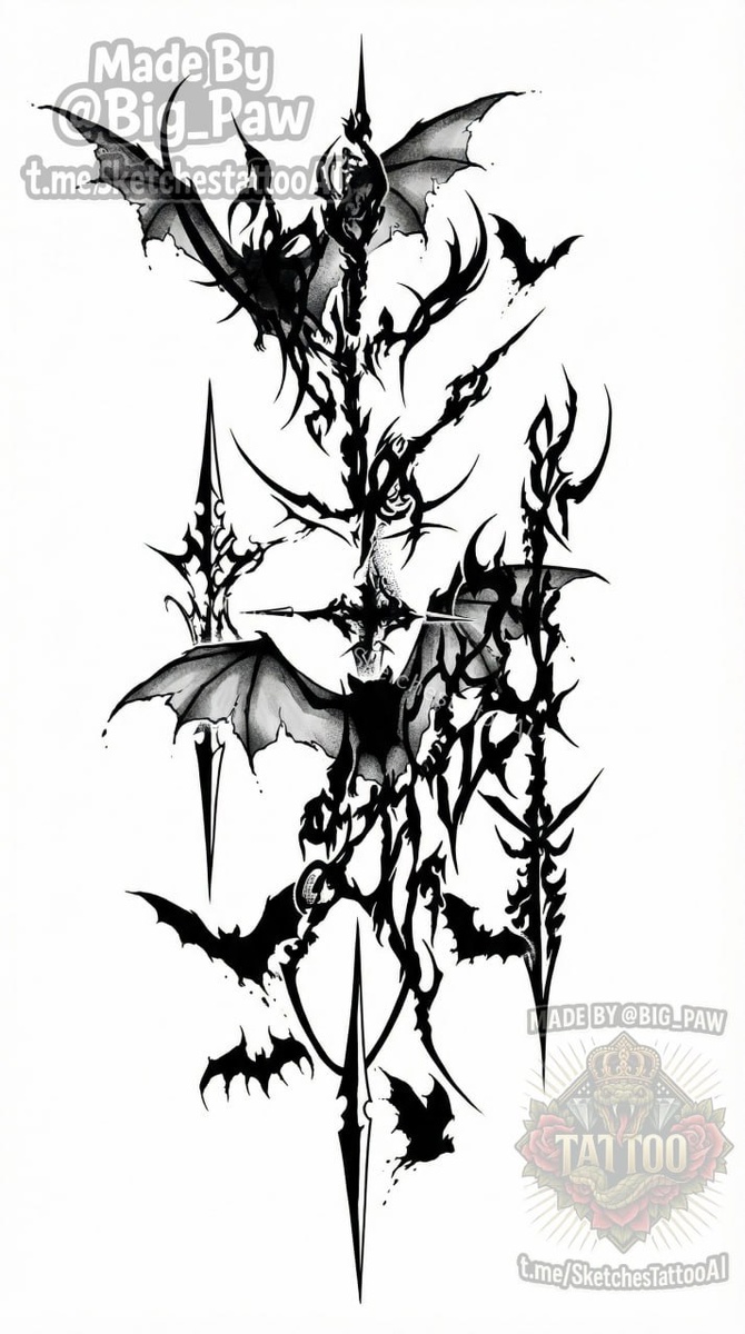 ? 🧠 SYNTX - тут создан эскиз 💎 Информация - все услуги 💀 Эскизы от нейросети 😎 Удалить тату #киберсигилизм #летучаямышь #дизайн #эскиз #тату #татуировка