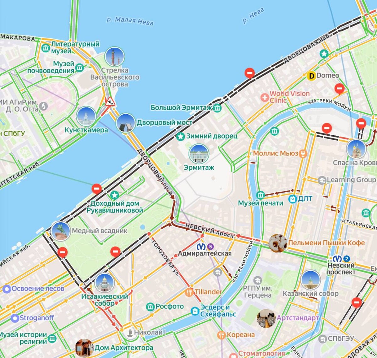😱 Эпопея продолжается: центр Петербурга снова перекрывают Водители сообщают о невозможности проехать по Дворцовому мосту. Кроме того, согласно данным «Яндекс.Пробок», введены ограничения на движение вблизи Исаакиевского собора и на Дворцовой набережной. 📷: яндекс карты Читай нас в MAX! | Читай нас в Telegram