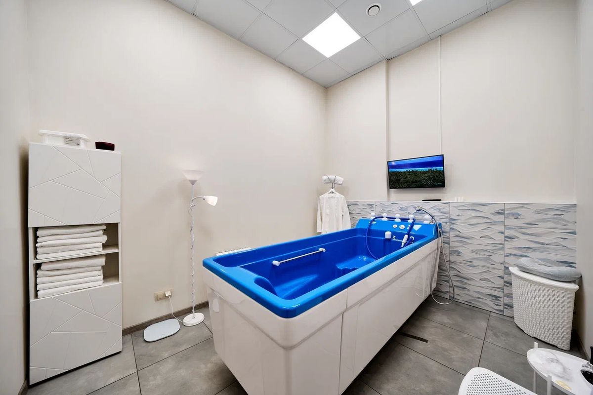 Вы погружаетесь в тёплую воду (34–36°C), и начинается подводный душ-массаж по зонам. Интенсивность регулируют “по месту”, ориентируясь на ваши ощущения.
