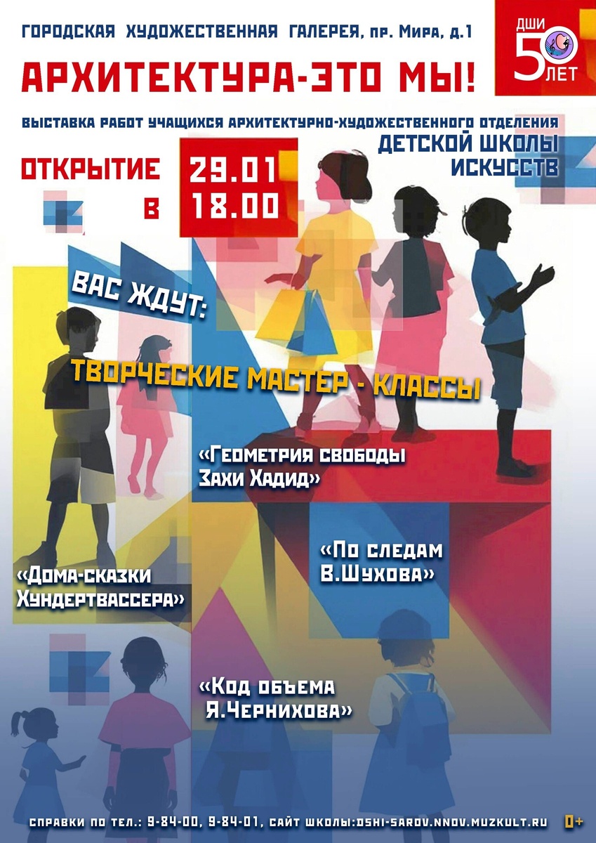 !" 29 января в 18:00 в Художественной галерее все желающие смогут посмотреть на результаты творчества ребят из архитектурно-художественного отделения ДШИ. Это и "Геометрия свободы" Захи Хадид, и дома-сказки Хундертвассера, и "Коды геометрии" Якова Чернихова, и многое другое. Посмотреть интереснейшую экспозицию с работами юных саровских архитекторов можно будет до конца марта.