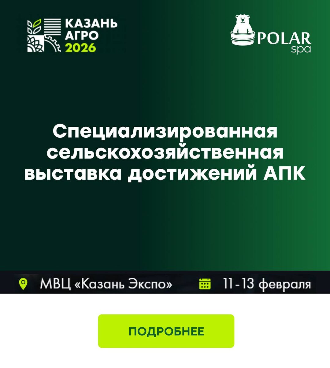 POLARSPA участник выставки «Казань Агро» 2026 📍 Стенд C4 ООО «Полар Спа» — производитель композитных купелей, модульных бань и гидромассажных СПА-бассейнов премиального класса под брендом TM POLARSPA. Компания принимает участие в выставке в разделе «Агротуризм», который в 2026 году представлен как новое направление «Казань Агро», ориентированное на развитие сельских территорий и туристической инфраструктуры. В производстве используются современные технологии и высококачественные материалы: термообработанная древесина, стальные и алюминиевые конструкции, износостойкие композиты и профессиональные комплектующие европейского уровня. Это обеспечивает долговечность, безопасность и стабильное качество продукции. Решения TM POLARSPA востребованы в СПА-комплексах, глэмпингах, санаториях, зонах отдыха и частных проектах, органично вписываясь в концепции агротуризма и повышая привлекательность объектов для посетителей и инвесторов. Производство ООО «Полар Спа» расположено в Республике Бела