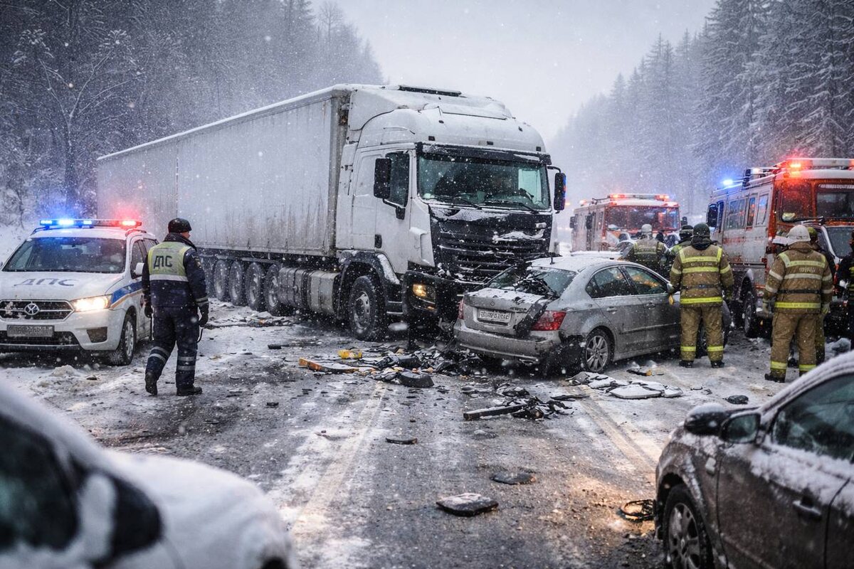 Не потому, что все вдруг разучились ездить. И не потому, что «дальнобойщики носятся». Всё куда прозаичнее. Зимой у грузовика резко меняется поведение. Асфальт холодный, сцепления меньше, дорога постоянно разная — то сухо, то лёд, то снежная каша. А машина та же самая, вес тот же самый, привычки у водителя тоже те же. И вот тут начинаются нюансы. Самое коварное — давление в шинах. На морозе оно падает, и ты этого даже не всегда чувствуешь. Машина вроде едет, руль крутится, всё нормально. Но в критический момент — при торможении или на повороте — шина уже не держит так, как должна. Начинает «плыть», появляется задержка в реакции, и фуру может сложить буквально за секунды. Плюс многие смотрят на шину просто: протектор есть — значит можно ехать. А зимой это не работает. Протектор может быть, но он уже «уставший», ламели забиты, края сглажены. На сухом асфальте ещё терпимо, а на льду или укатанном снегу сцепления почти ноль. И водитель до последнего уверен, что всё под контролем. Добавь сю