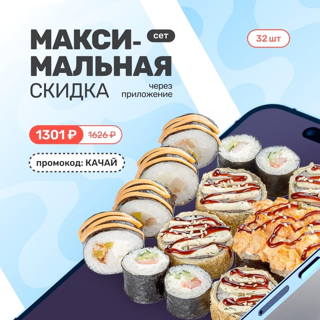 🥘 НЕ ЗАКАЗЫВАЙ без приложения👏 Качай FARFOR и забирай роллы ещё дешевле🧠 Весь Январь сет Максимальная скидка 32шт за 1301₽ вместо 1626
