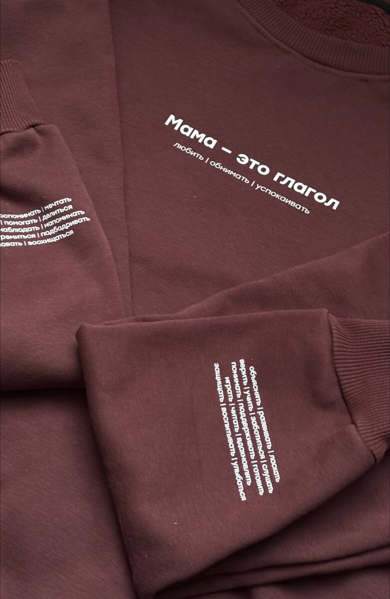 Адаптация принта «Мама - это глагол» на шоколадном свитшоте 🤎