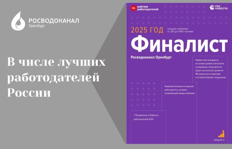 Росводоканал Оренбург вошел в число финалистов авторитетного рейтинга работодателей HeadHunter-2025 (hh.ru), получив статус «Финалист». Компания признана привлекательным и открытым работодателем, успешно развивающим свой HR-имидж на рынке труда. Из предприятий группы компаний «Росводоканал» в рейтинг вошли три работодателя, в числе которых Росводоканал Оренбург. Рейтинг HeadHunter — это независимая оценка работодателей, которая формируется на основе комплексного анализа ключевых показателей: уровня лояльности и вовлеченности действующих сотрудников, популярности компании среди соискателей, эффективности и развития внутренних HR-процессов, а также анализа отзывов бывших сотрудников. В 2025 году в рейтинг вошли 1 792 компании из всех регионов России, что делает это достижение особенно значимым. «Это закономерное следствие нашей системной работы. Водоснабжение и водоотведение — социально ответственная и высокотехнологичная отрасль, которая держится на людях. Поэтому наш ключевой приорите