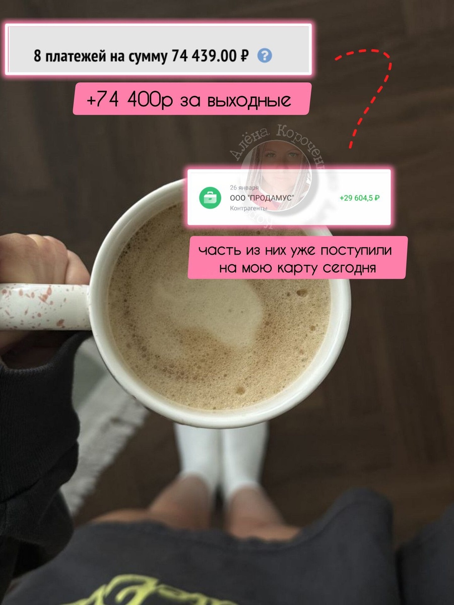 🏃♀️ А я просто обновила баланс и увидела +74 000 ₽ за выходные 😌 Я не говорю, что найм это плохо. Я говорю, что есть другой вариант. Где понедельник — обычный день, а не маленькая личная трагедия 😉 Купить обучение с моей помощью, можно по ссылке ✅ https://payform.ru/aca6Iui/ Чтобы научиться так же зарабатывать👌 @alenakorochenko