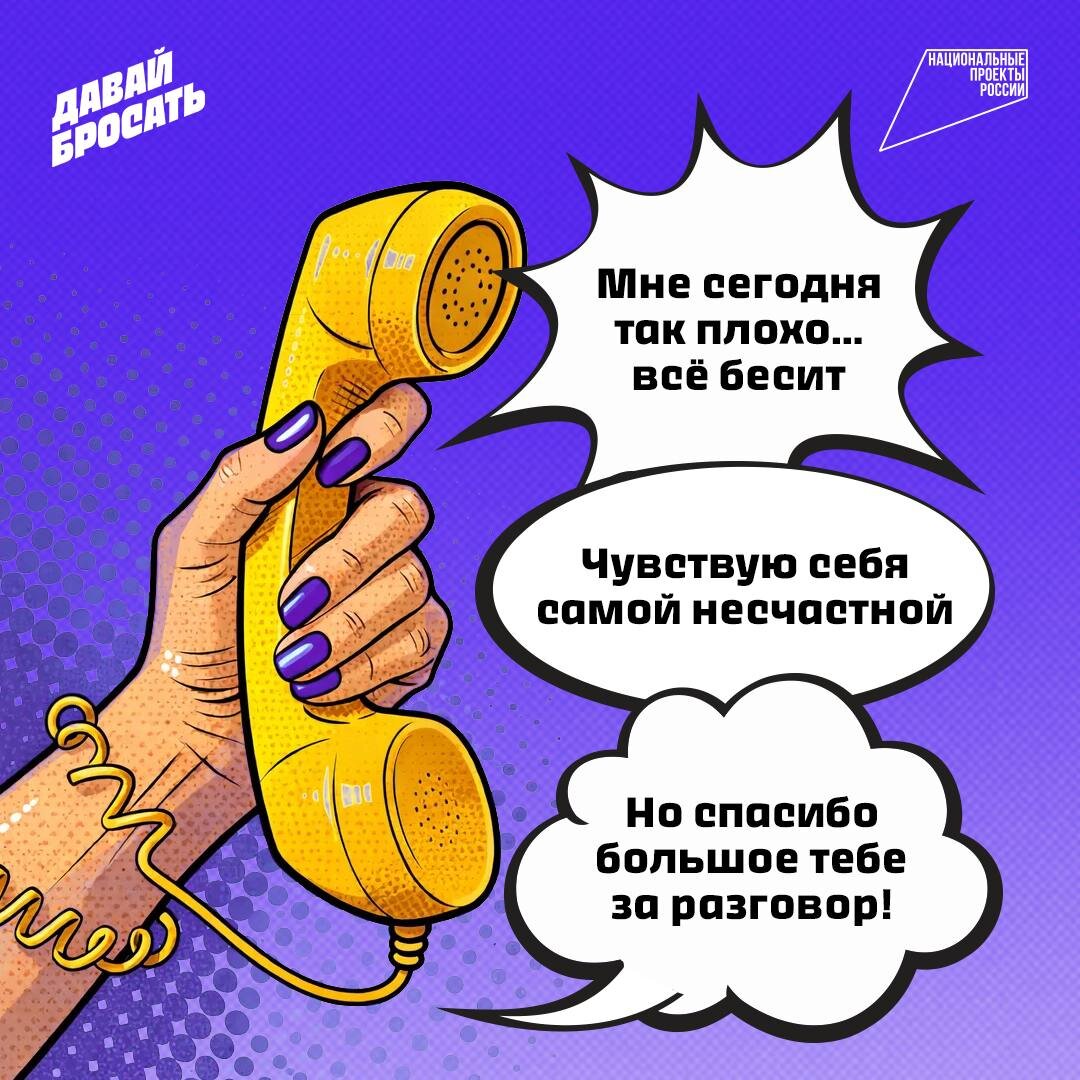 💛 Первый месяц отказа был самым тяжёлым, но Роза проходила его не одна — они с сестрой бросали вместе. Каждый день созванивались, жаловались, поддерживали друг друга и вместе проживали этот этап — после таких разговоров реально становилось легче. Сейчас Роза уже больше сорока дней без никотина 💪 Тяга ушла примерно через месяц, а мысли о курении почти не появляются. На карточках мы визуализировали один из таких разговоров 📞 Может он вдохновит тебя тоже поделиться с кем-то своими переживаниями. А ты бросаешь один или с кем-то? Делись в комментариях ⤵️ #ты_справился